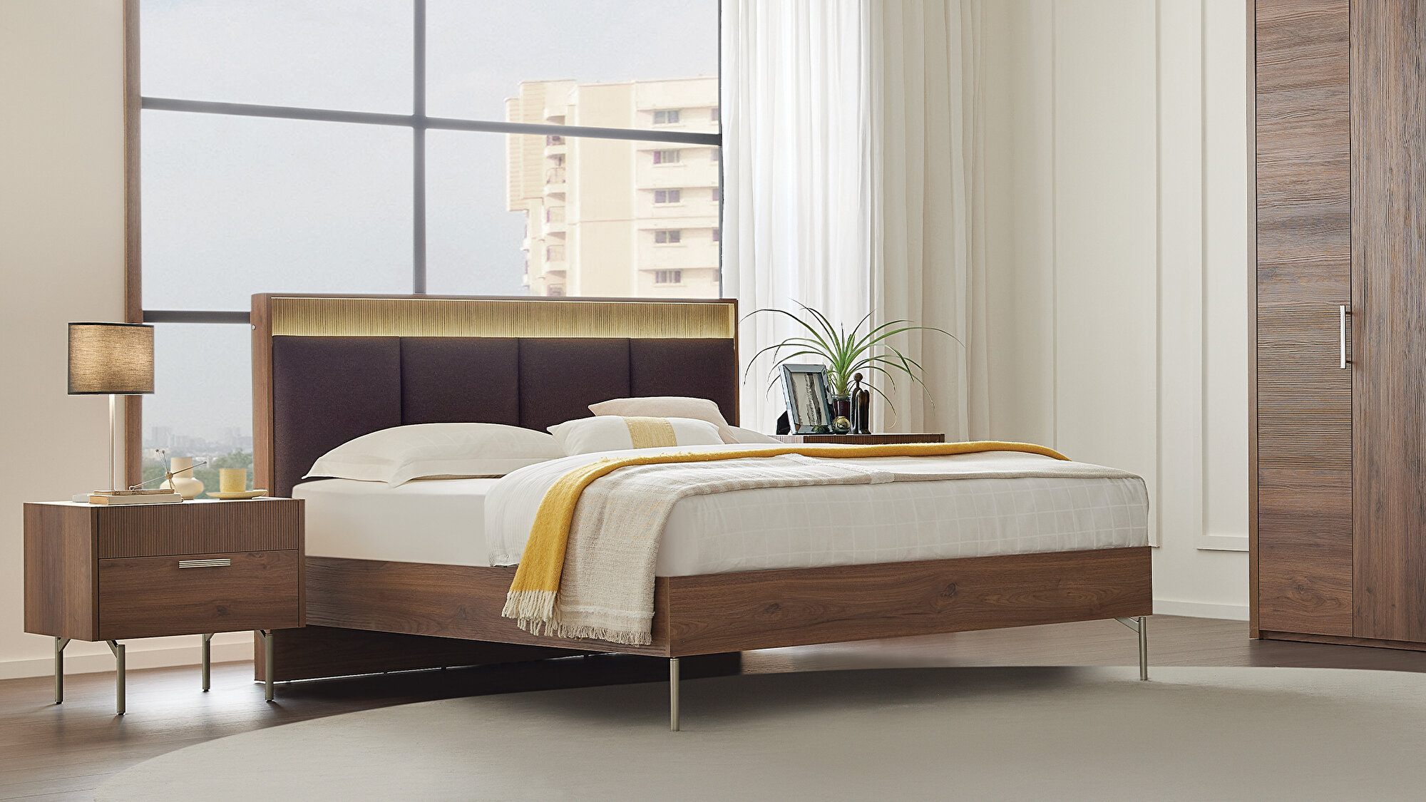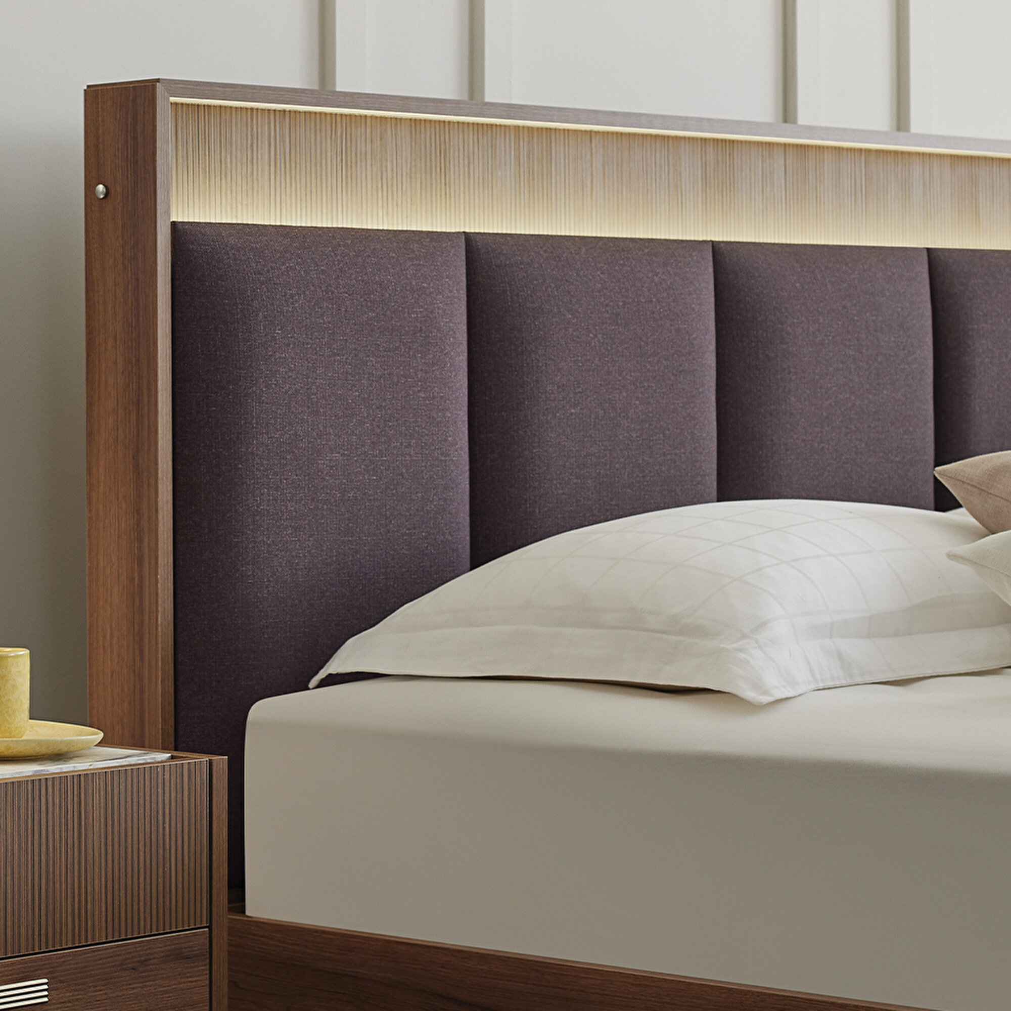 Lighted Hood Reflecting the natural wood elegance of the Pavia series with striking design details, the PAVIA BEDFRAME with HEADBOARD makes a difference in bedrooms with its special lighted headboard application.