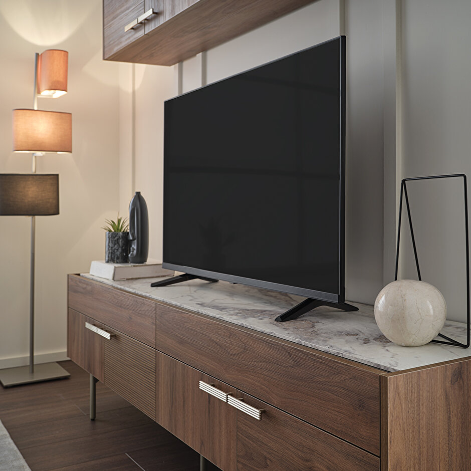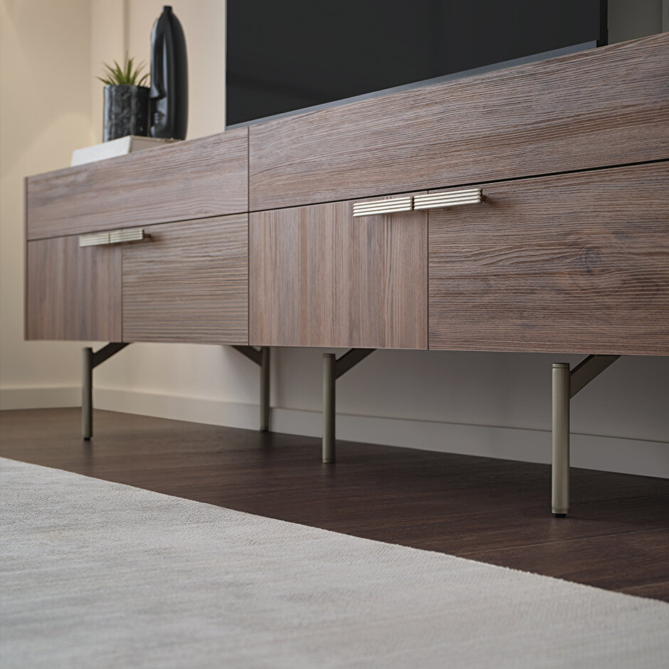Qualified Details PAVIA TV UNIT, which stands out with its qualified design line that offers a natural aesthetic, provides a comfortable storage area with the use of 2 drawers.