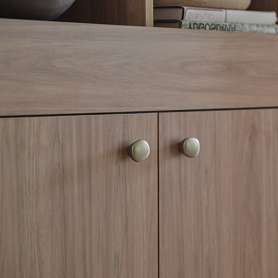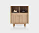 PERGE VERTICAL MODULE brings the free and sophisticated spirit of bohemian design to homes. The warm texture of natural oak color, combined with modern wood details, creates a friendly and stylish atmosphere in every living space. Metallic mink metal handles complete the design with an elegant touch, reinforcing the modern and stylish atmosphere of the module.