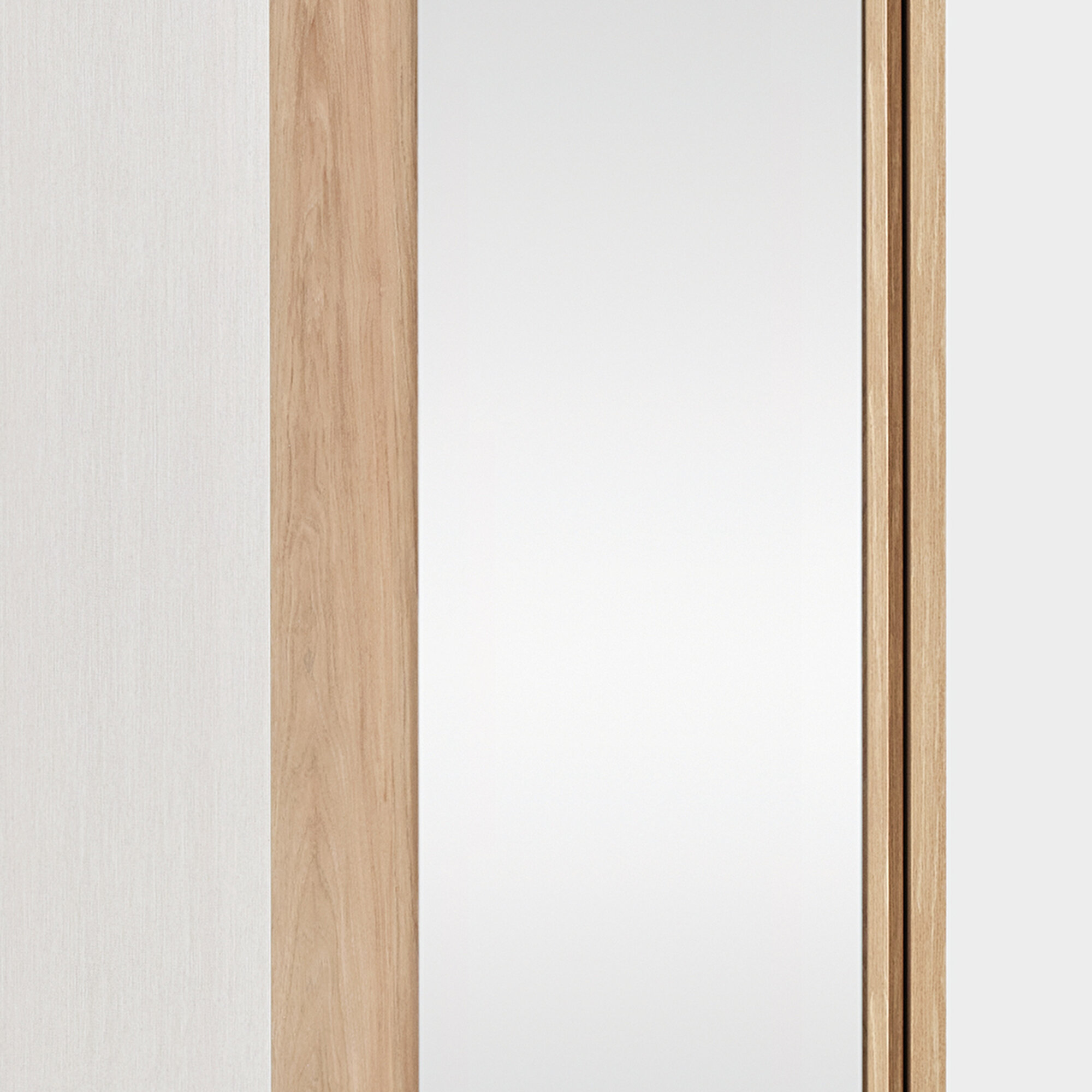 With its modern wood texture and bohemian design, PERGE SLIDING DOOR Wardrobe adds a natural touch to the decoration. The oak and cream color combination gives a warm and inviting atmosphere, while the natural color mirror refreshes the space. The slowing rail system increases comfort in daily use and creates an elegant feeling at every opening. PERGE SLIDING DOOR Wardrobe reflects its style with a free and sophisticated approach.