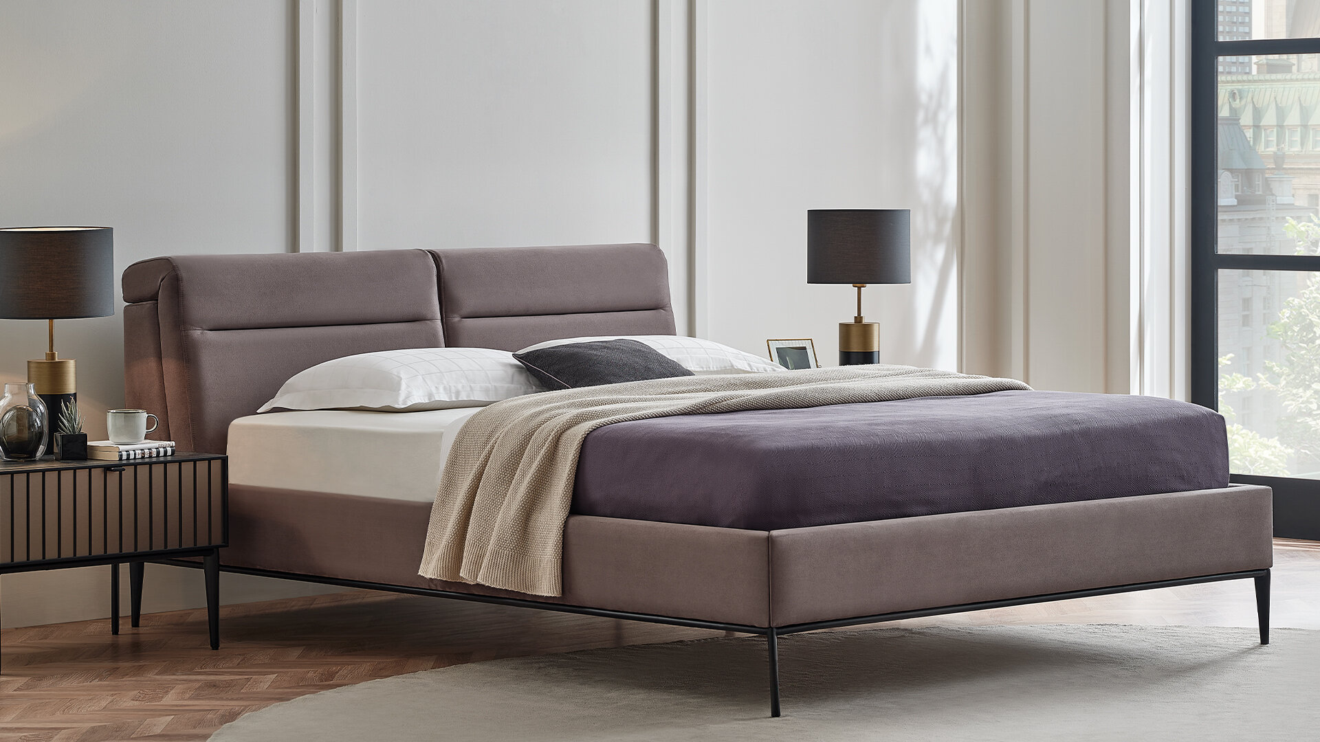 The harmony of classic and modern, fabric stitched headboard