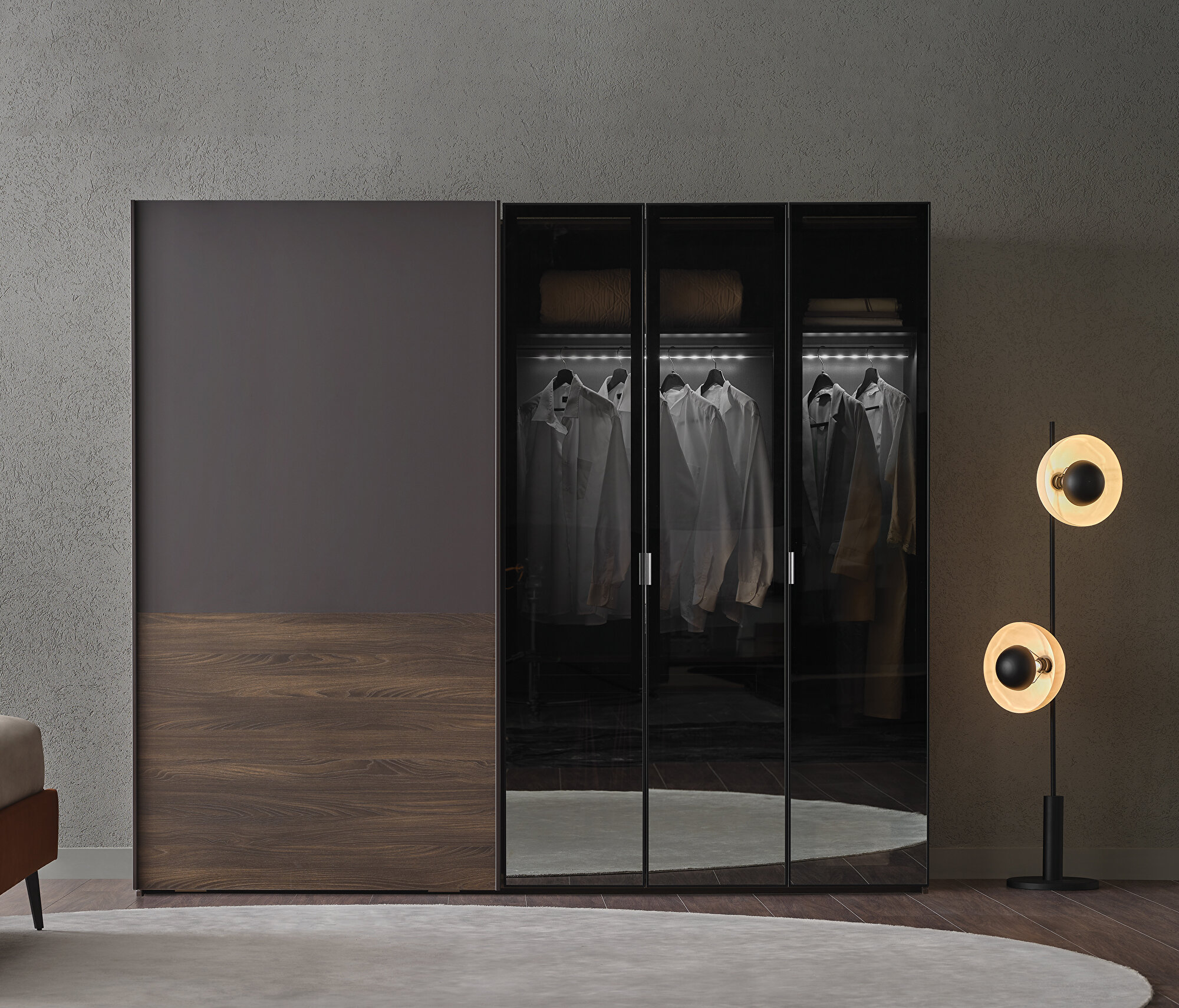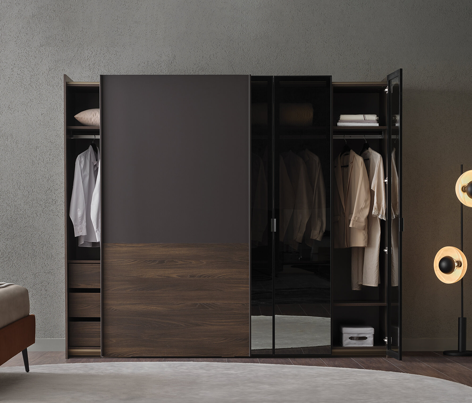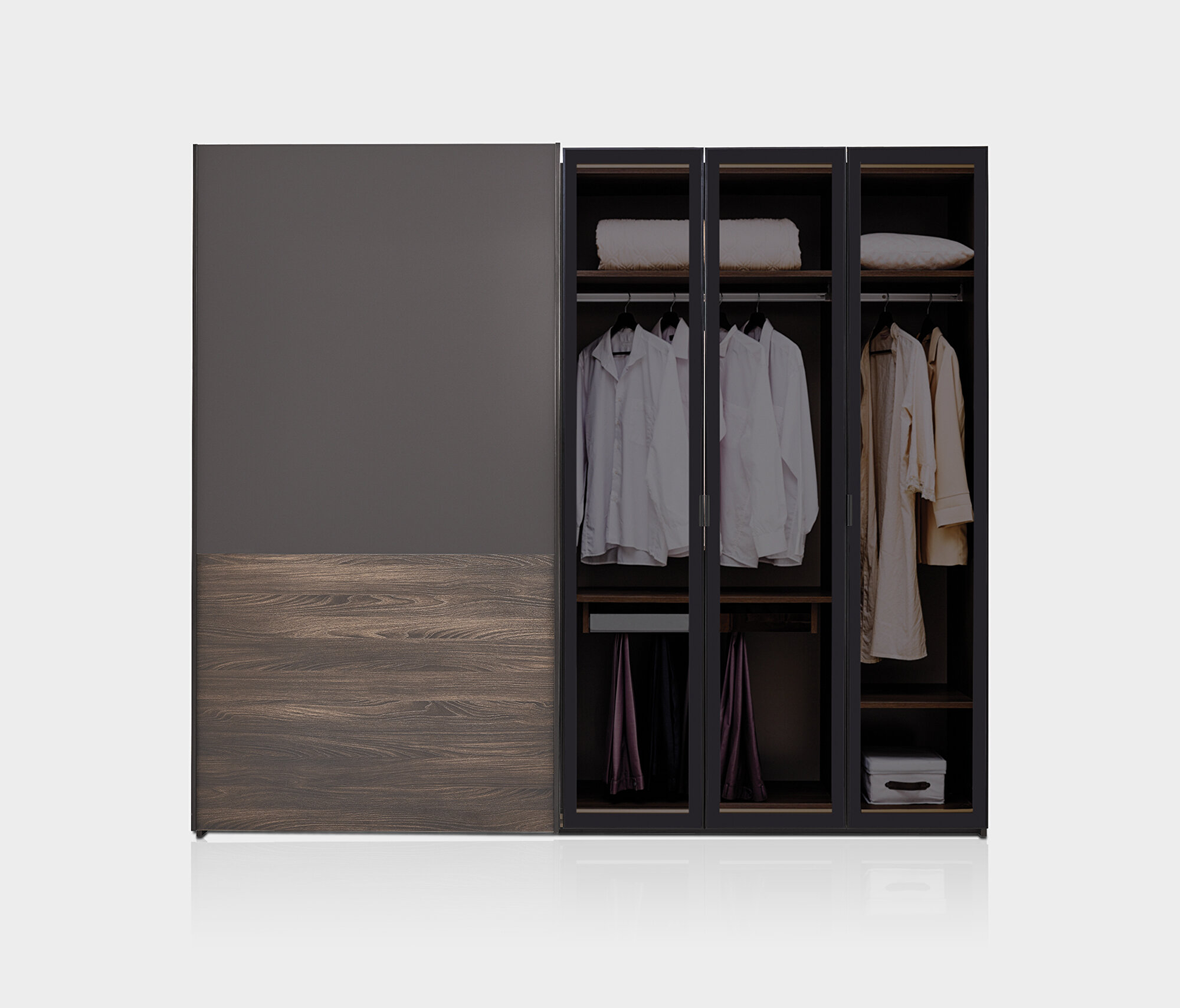 Walnut-Black Wardrobe, 253x222 cm (WxH)
