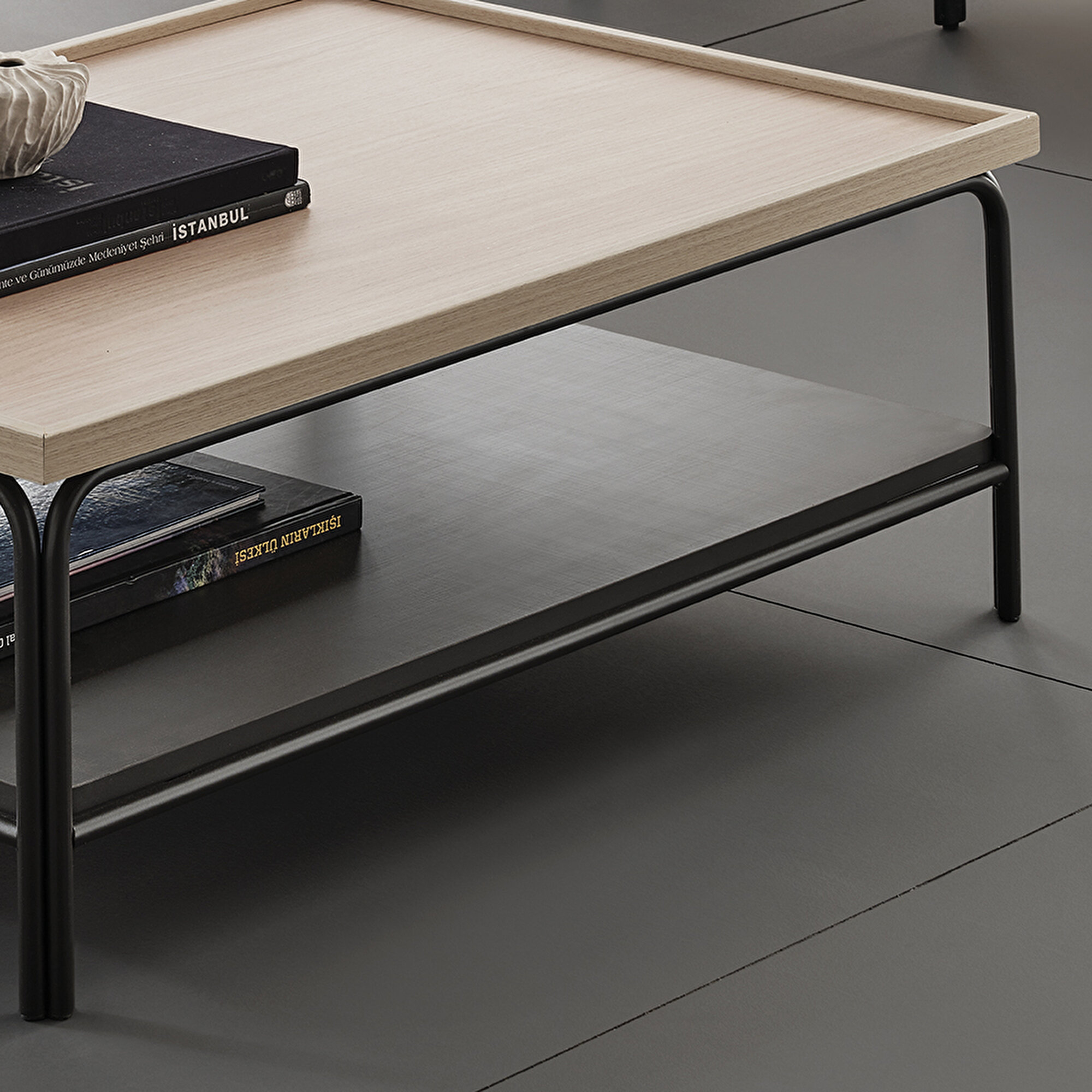 Offering contemporary design details, the TERRA COFFEE TABLE provides a wide range of design freedom. Offering a natural look with its light oak color, the coffee table captures a simple look thanks to its minimalist style. The coffee table, which is adorned with pleasant and qualified details, comes with metal legs compatible with the TERRA series.