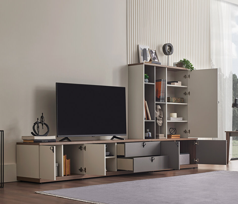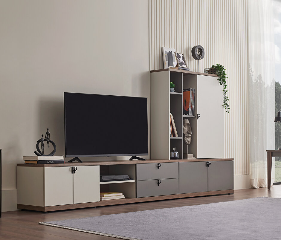 White-Gray-Walnut TV Unit Bookcase Module, 100x150 cm (WxH)