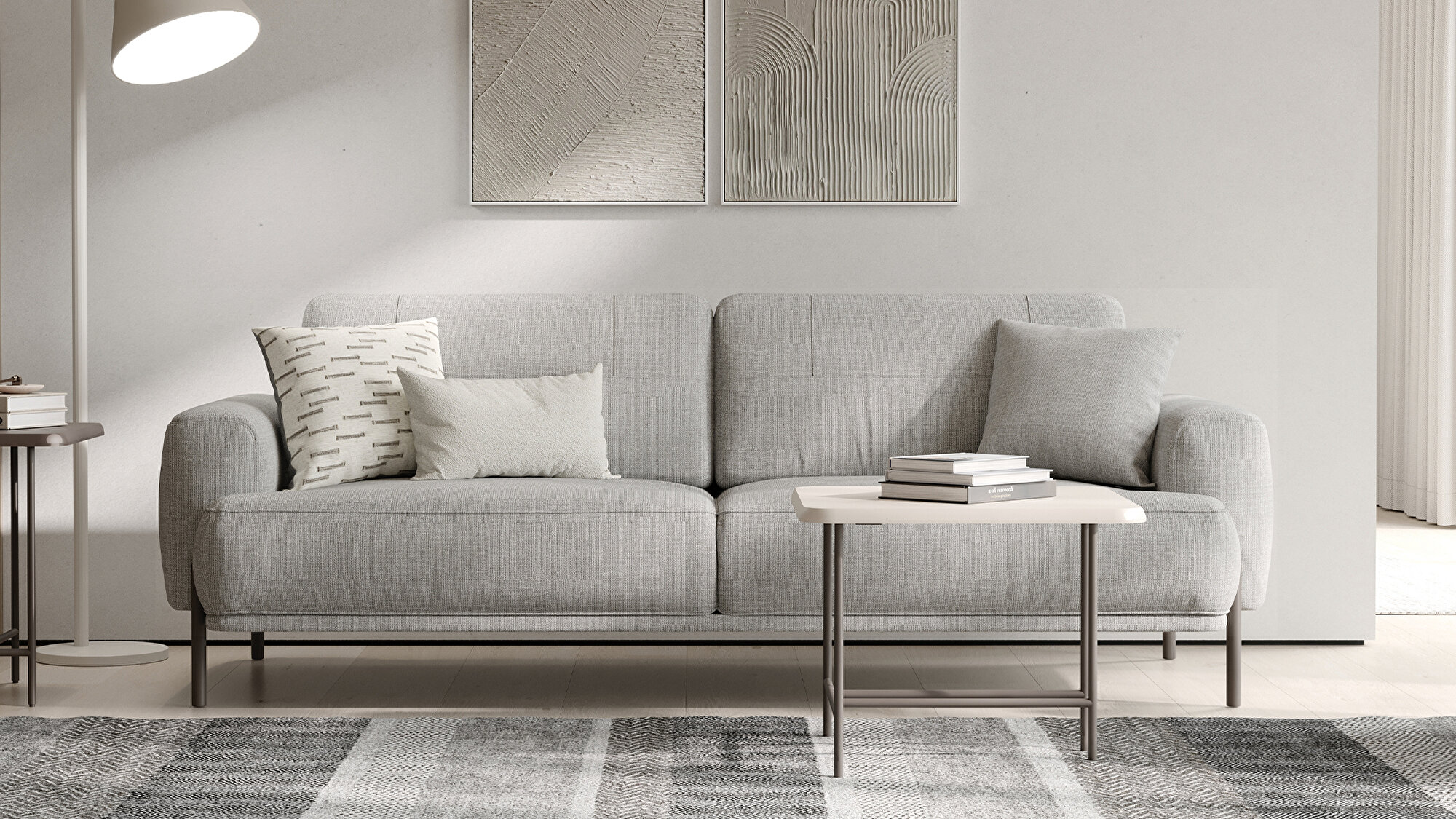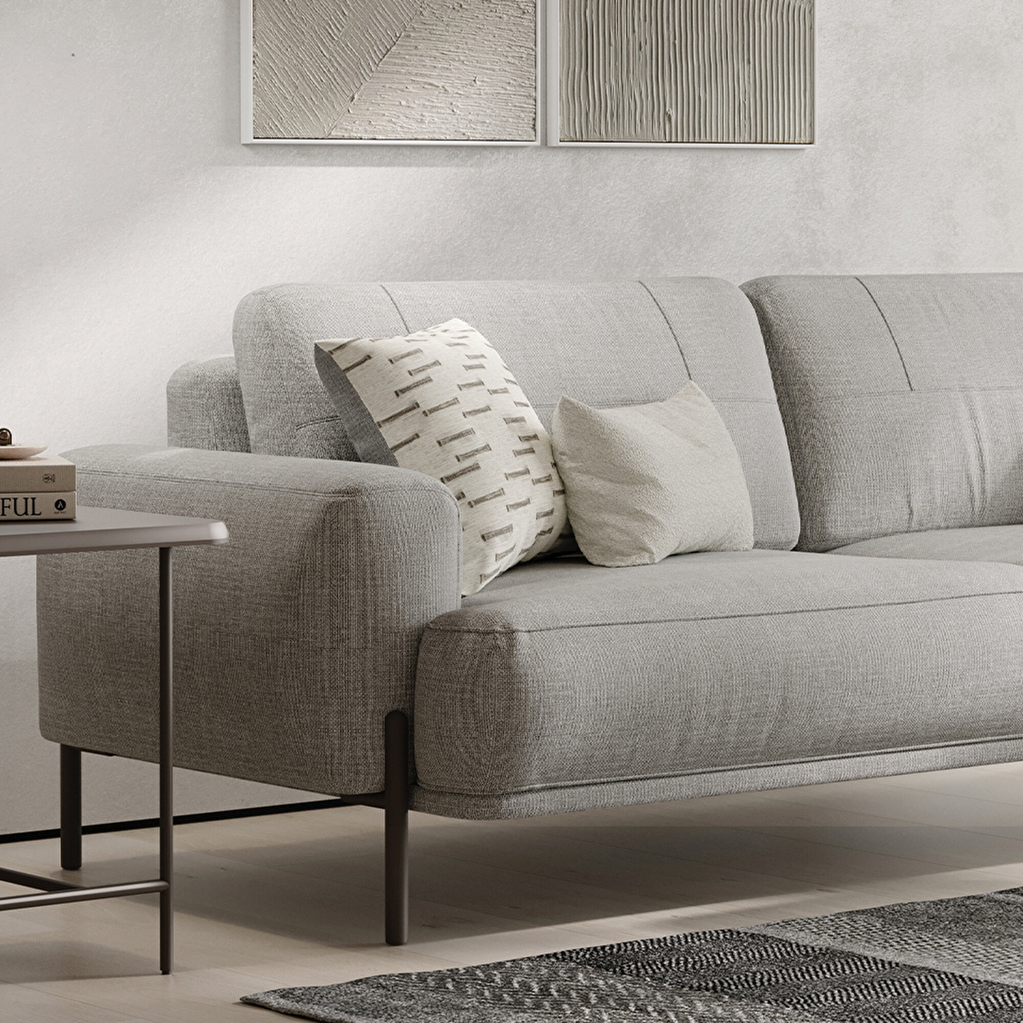 Color Light Gray | Package Dimensions 2150x1150x700 mm 320x240x140 mm | Cushion Dimensions Cushion 1: 45x45 cm - 2 Pieces Cushion 2: 35x50 cm - 1 Piece | Cushion (pcs) 3 |