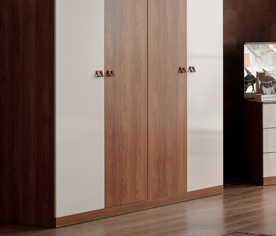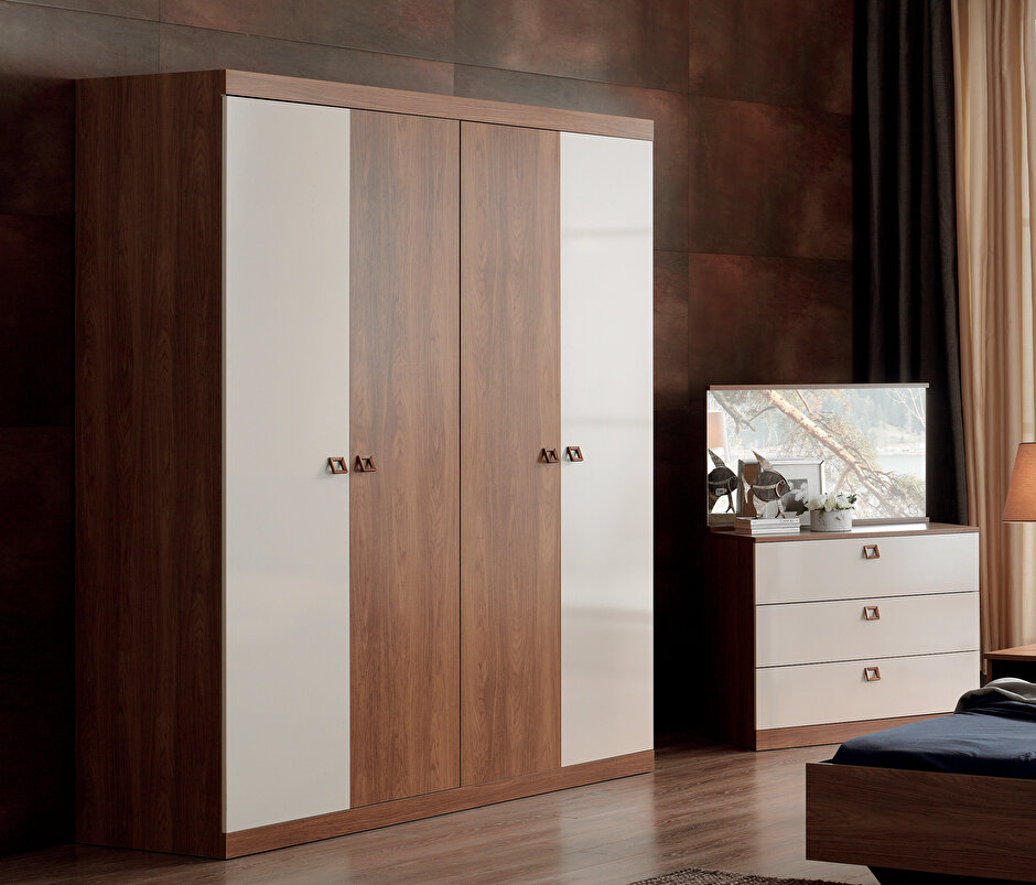 Walnut - Glossy Cream Wardrobe, 178x221 cm (WxH)