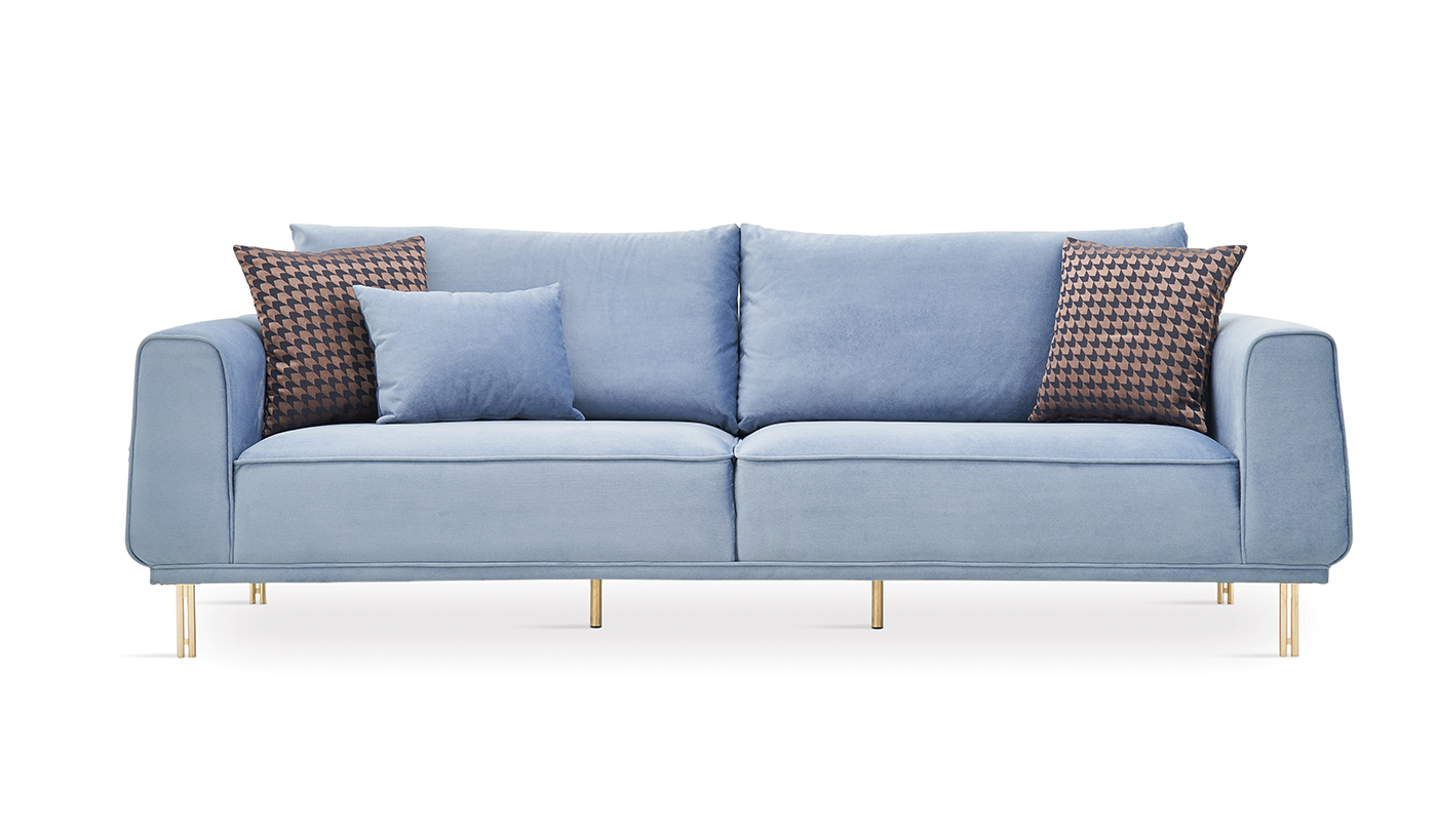 Inspired by the spectacular design details and dynamic patterns of the 60s, the MERIDA LIVING ROOM puts a contemporary interpretation to the classical decoration line. It crowns its maximum sitting comfort, which stands out through its use of multilayer foams, with its velvet fabric that creates a stylish and warm effect in the space. Its armchair with swivel leg which stands out with its ergonomic design and geometric patterns adds a dynamic touch to the decoration. MERIDA LIVING ROOM, which has the advantage of long-term use thanks to its metal supported wood construction, crowns its unique look with its gold leg design.