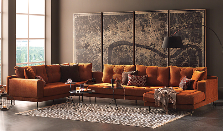 "The Strong Effect of Modernism| Complementing colour tones which inspire emotions of warmth and safety with a stylish and contemporary style, ARTE CORNER SOFA SET combines comfort and aesthetics with foot designs with combinations of black matt metal and gold colour which complements the soft texture. Enriching its design with its contemporary throw pillows and fabric applications, special design armchair alternative and technological accessory application, the ARTE CORNER SOFA SET appeals to personal tastes by offering different combinations. "